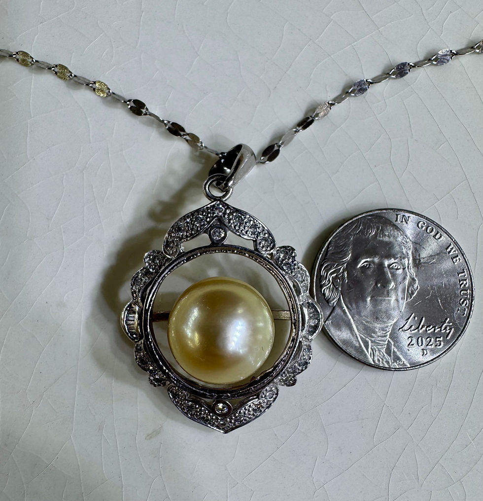 14kt White Gold Diamond And Golden South Sea Cultured Pearl Necklace